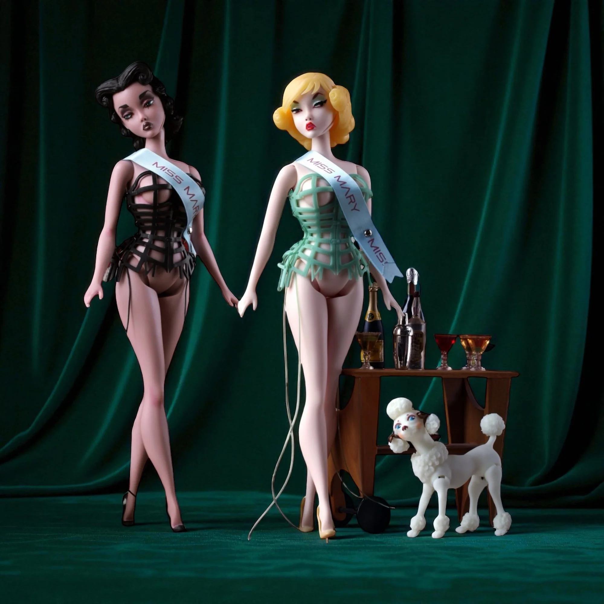 Miss Mary is the brainchild of artist Joey Versaw. The first 3-D printed fashion doll, now available in luxury resin, Miss Mary and her lover Monday, are the out of this world - girls with two faces